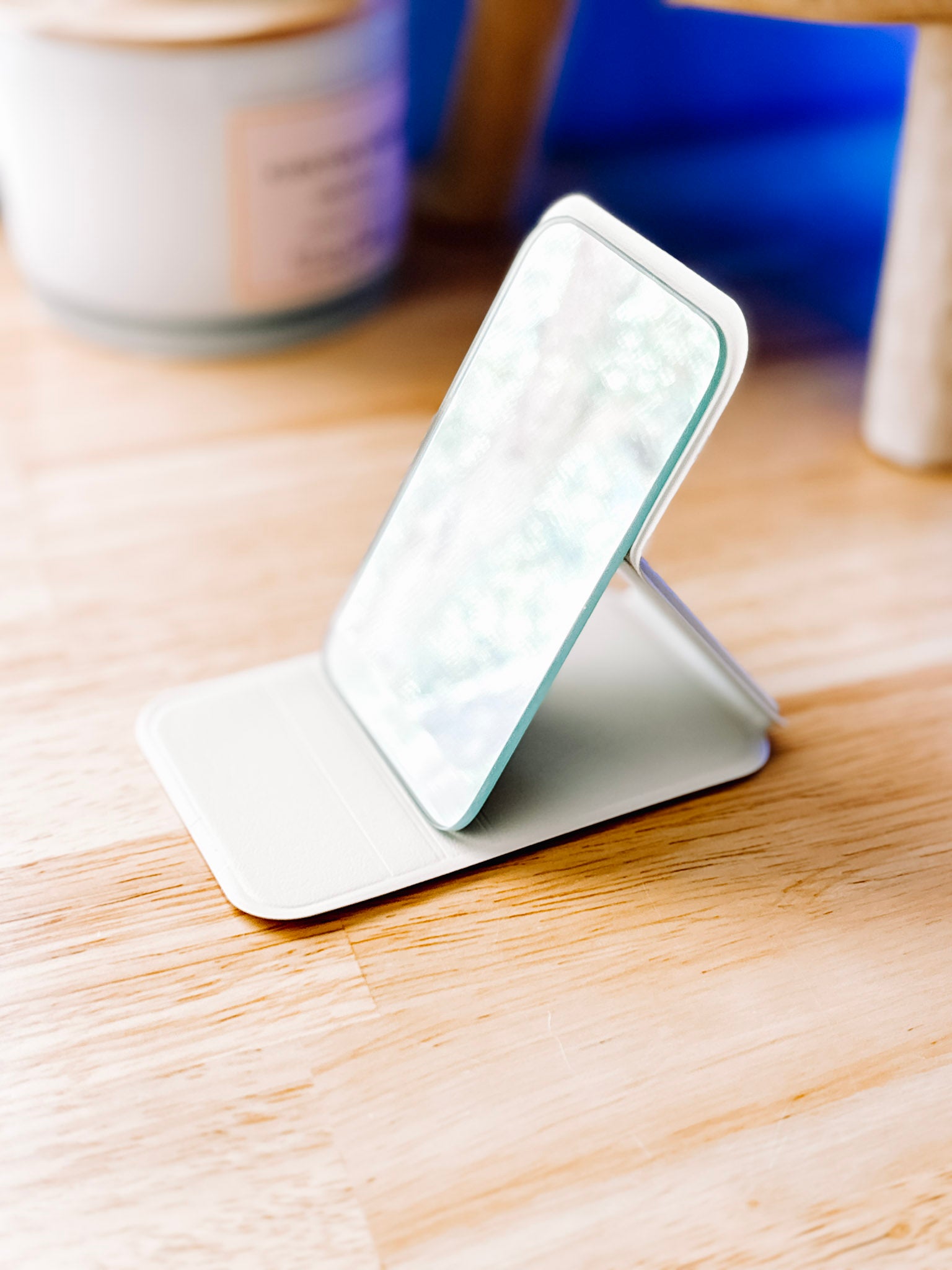 Whether you’re touching up your gloss before a live, checking your glow before an event, or snapping that flawless selfie, this sleek white Bellame Pocket Mirror is a must-have accessory that keeps your brand—and your beauty—shining.