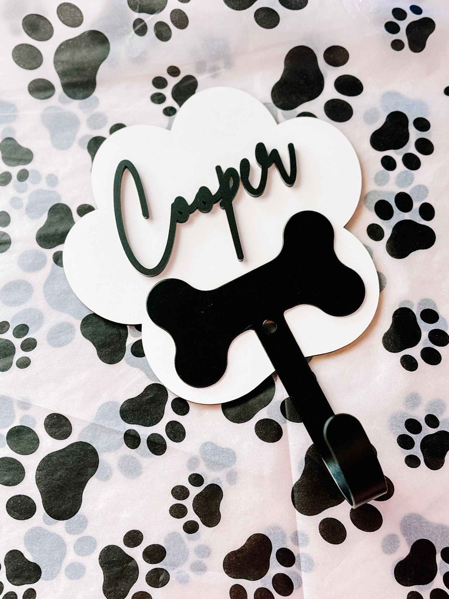 Add a touch of love (and a little organization) to your home with this custom leash holder, beautifully crafted to celebrate your furry best friend. Each piece is made to order with your pet’s name.
