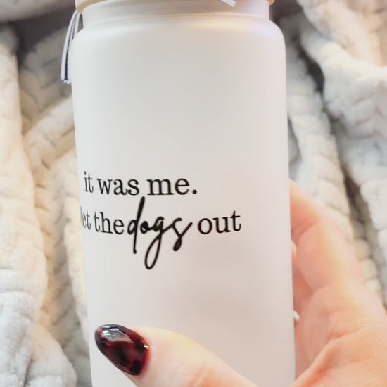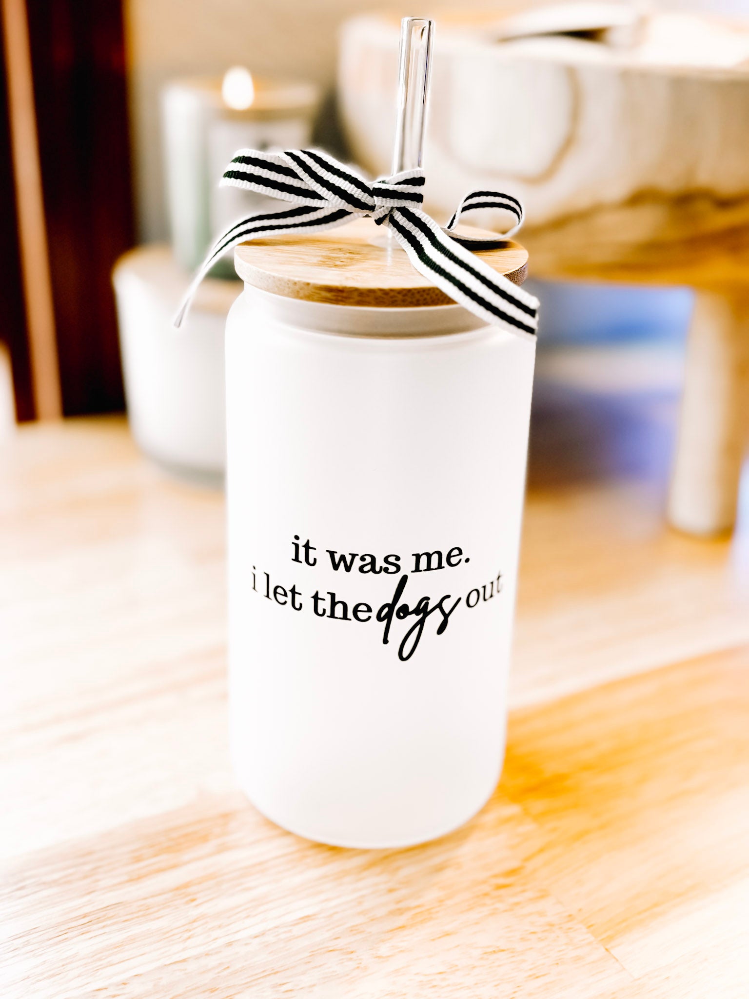 "It Was Me. I Let the Dogs Out." Frosted Glass Can Cup with Bamboo Lid & Straw